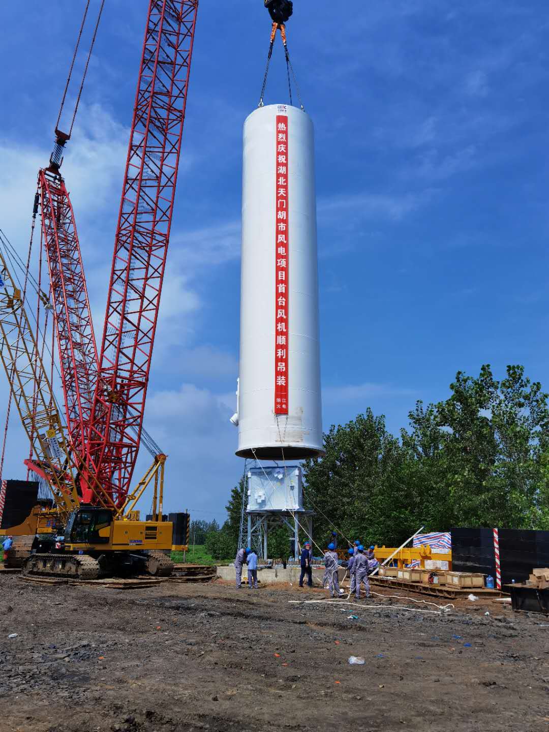 熱烈慶祝湖北天門胡市風(fēng)電項(xiàng)目首臺(tái)風(fēng)機(jī)順利吊裝!